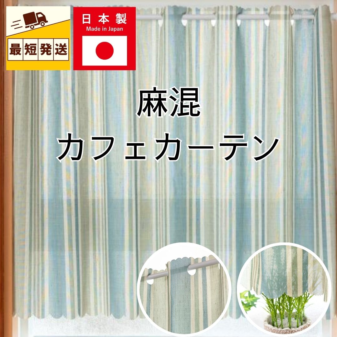 \得!P5倍/即納 小窓用 カフェカーテン 北欧 ストライプ 麻 おしゃれ 仕切り 幅 100 丈 45 72 cm 送料無料 安い カーテン ロング丈