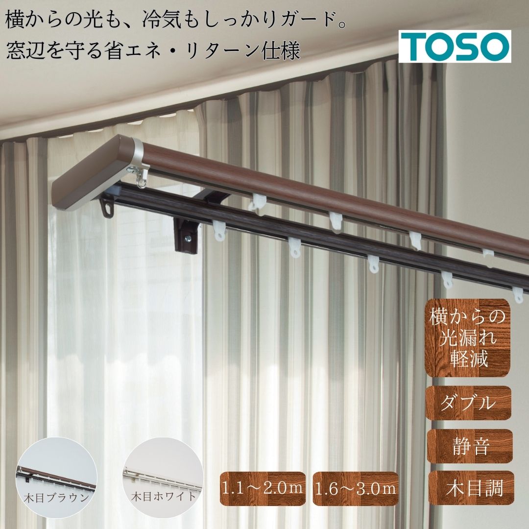 \ポイント5倍/カーテンレール 伸縮 2m 3m TOSO トーソー リネアR リターン仕様 光漏れ防止 遮光 断熱 省エネ 木目調 シングル ダブル 賃貸 送料無料