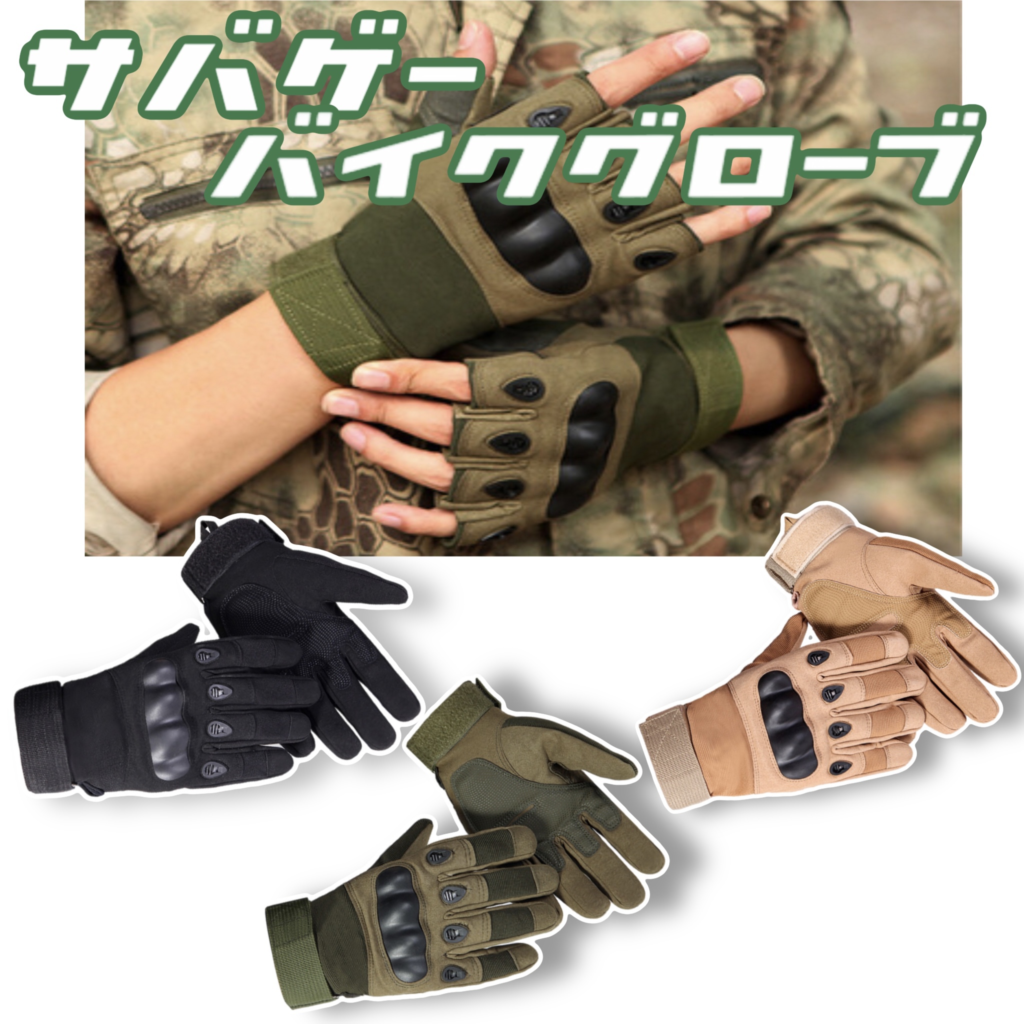 ミリタリー カモフラージュ ファッション ハーフフィンガー グローブ ナックルプロテクション 手袋 探検 狩猟 バトルゲーム 射撃 特殊部隊 指あり