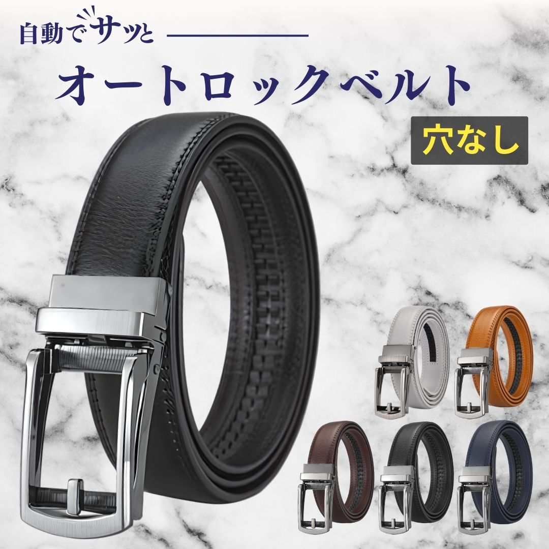 ベルト メンズ オートロック ブラック 黒 本革 穴無し 調整可能 ビジネス フォーマル 自動 通勤 ゴルフ 紳士 おしゃれ 無段階 学生 レザー 130cm 無調整 スーツ