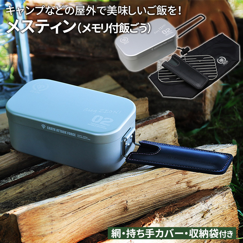機動戦士ガンダム メスティン(メモリ付飯ごう) ジオン公国軍モデル(GO-101) 飯盒 網付き アウトドア キャンプ飯 野外 屋外 調理 炊飯 料理 焚き火 角利産業
