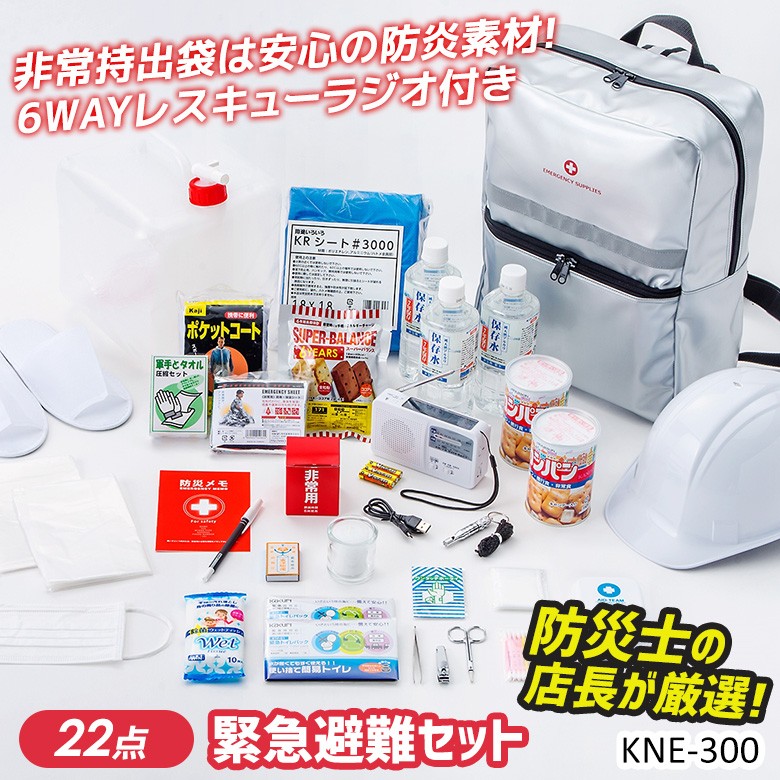 防災セット 緊急避難セット(KNE-300) 防災グッズ 非常用 持ち出し袋 防災用品 避難セット 避難袋 地震対策 角利産業 台風 災害