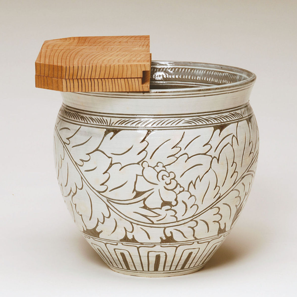 黒石窯による掻落技法(かきおとし)で文様を施した上品な意匠が魅力です。