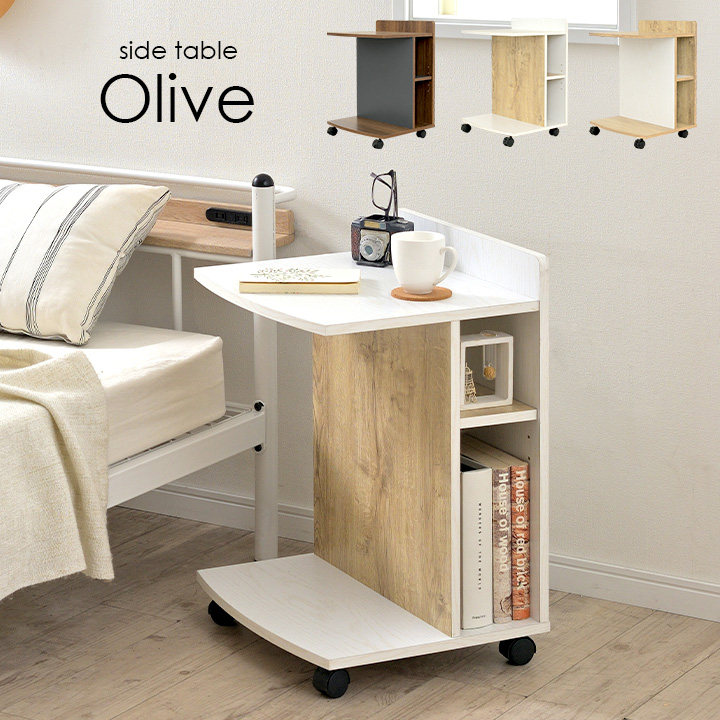 テーブル ナイトテーブル サイドチェスト カフェテーブル ベッド ソファ キャスター付き マガジンラック ミニデスク サイドテーブル Olive(オリーブ) 3色対応