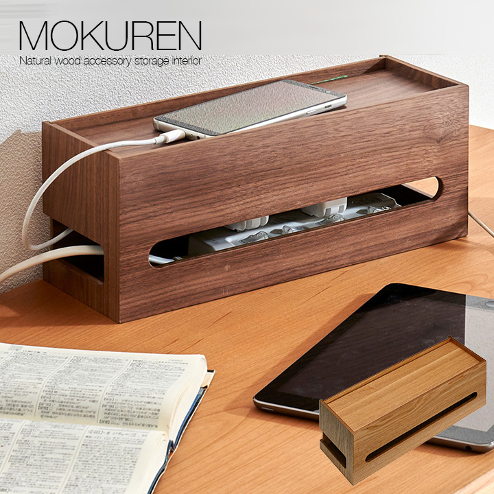 高級材突板使用 MOKUREN(モクレン) タップケース RF-18004WN/RF-18004NA ケーブルボックス コードケース 木製 おしゃれ コンセント収納 ケーブル収納 配線隠し