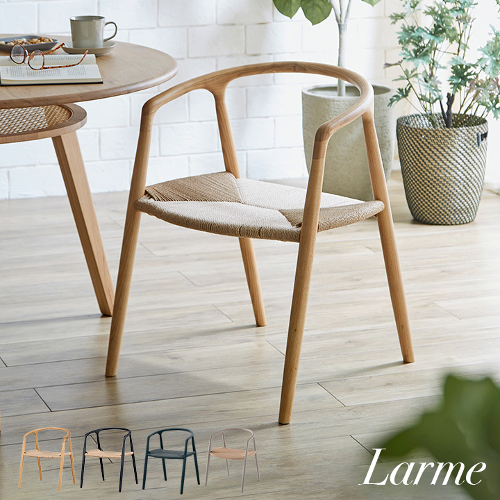完成品 ペーパーコード ダイニングチェア ダイニングチェアー デスクチェア デスクチェアー 食卓椅子 おしゃれ 無垢材 肘掛け付 木製 Larme(ラルム) 1脚 4色対応