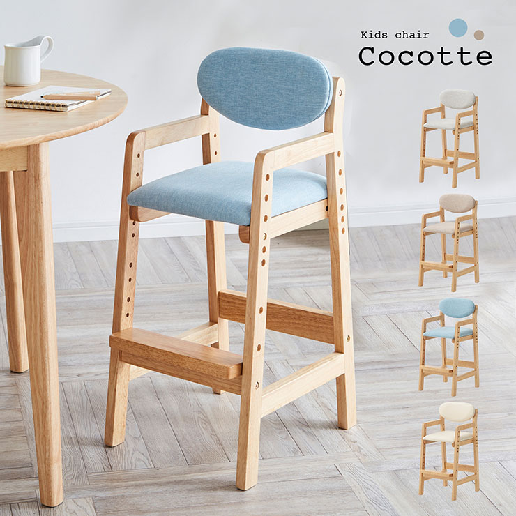 高さ調節可能 キッズチェア キッズチェアー ハイチェア ハイチェアー 子供 子供椅子 脚置き付 ダイニング 木製 天然木 かわいい Cocotte(ココット) 4色対応
