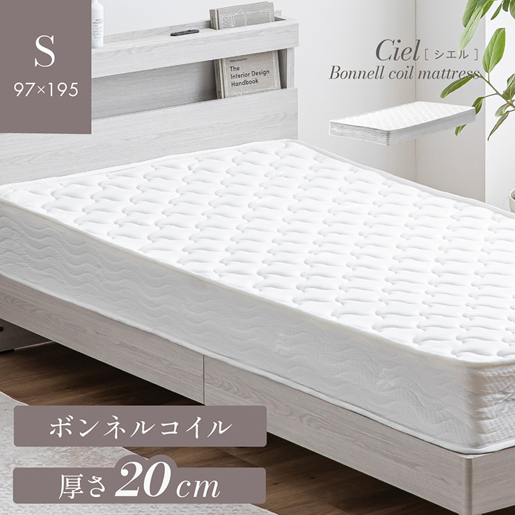 マットレス 高反発 シングルサイズ ボンネルコイルマットレス 厚さ20cm 敷布団 敷き布団 おしゃれ ベッドマットレス 硬め 圧縮梱包 Ciel(シエル)