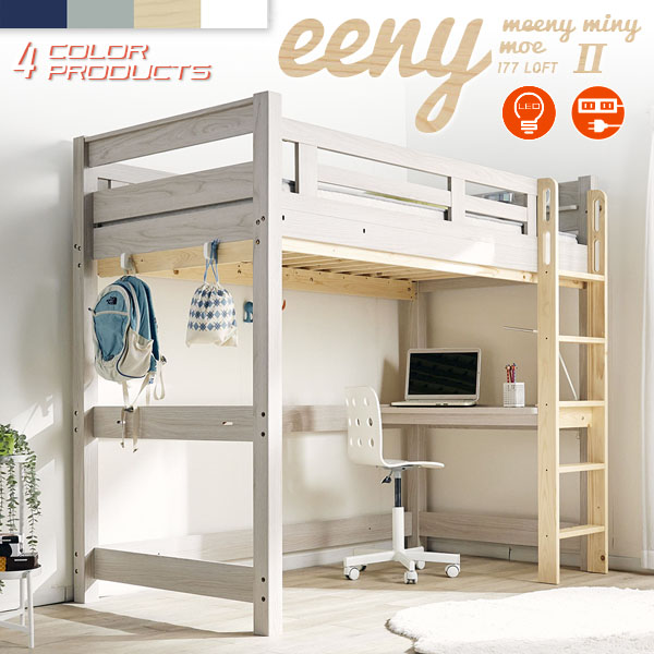 特許構造 ロフトベッド システムベッド ロフトベット デスク 子供 ハイタイプ 机付き 木製 宮付き おしゃれ 頑丈 eeny(イーニー) Hi basic H176cm 4色対応