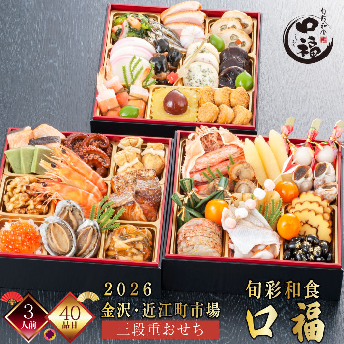 おせち 金沢 おせち 3人前 近江町市場 おせち 2026 旬彩和食 口福 三段重 おせち料理 冷凍 厳選食材 40品目 新春 お正月 加賀料理 海の幸 御節料理 三久食品