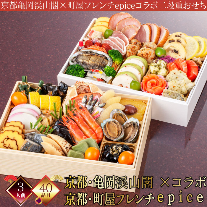 おせち料理 和洋折衷 3人前 2026 京都 湯の花温泉 渓山閣 出町柳 町屋フレンチ エピス 和洋コラボ 二段重 冷凍 厳選 40品 三久食品 早割 クーポン 2026.02.28