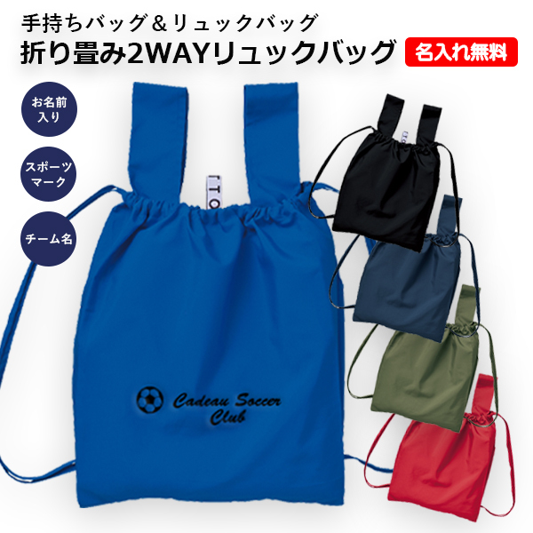 手触りなめらか折り畳み2WAYバッグ(手持ちバッグ&リュックバッグ)卒団記念品 入部記念品