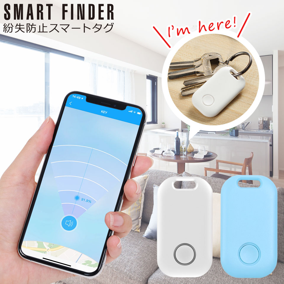 | 商品について | 【スマホと連動して探し物を見つける紛失防止スマートタグ】 スマホと連動して探し物を見つける紛失防止タグ「スマートファインダー」。鍵や財布などの貴重品に取り付けると、紛失時にブザーを鳴らして探すのをサポートしたり、置き忘れした時にスマホへ通知出来たりと、便利な機能が満載の紛失防止タグです。 【アイテムファインダー機能】 スマホでブザーを鳴らす機能。スマートファインダーを貴重品などに付けて置くことで、部屋のどこにあるかわからない持ち物を探せるスマートタグです。 【置き忘れ通知機能】 スマートファインダーとスマホが一定距離離れてしまった場合に、スマホへ通知されるので、置き忘れ帽子だったり、お子様やペットの迷子防止に役立つスマートタグです。 【双方向ブザー機能】 スマホからスマートタグだけでなく、スマートタグからスマホへ、と双方向で音を鳴らすことが出来るので、スマホが見つからない時にも役に立ちます。 【GPSログ機能】 スマートタグは、紛失した場所をマップに表示することが出来ます。失くした場所の目星が付けられて、とても便利です。 【マルチアイテム管理機能】 1台のスマホで、最大4台までのスマートファインダーを、同時管理することが出来ます。 【リモートシャッター機能】 専用アプリでカメラを起動して、スマートファインダーのボタンを押すだけ。セルフィーも簡単に撮れるスマートタグです。 |