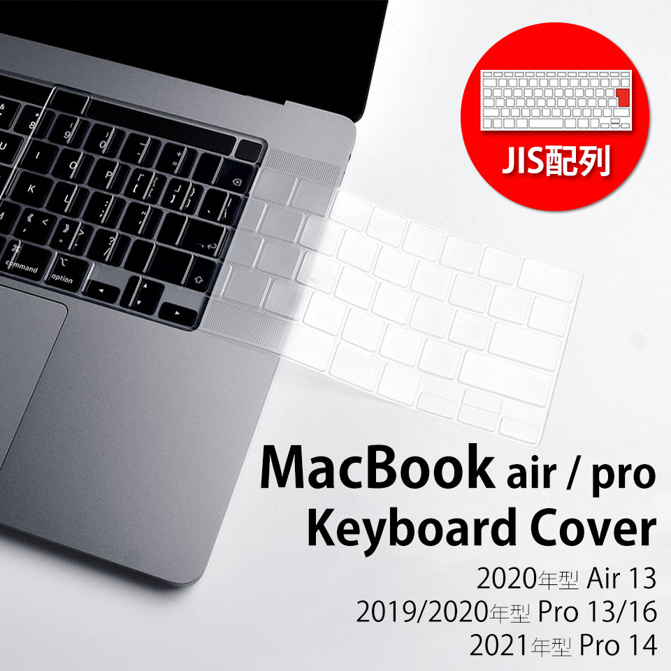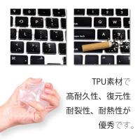 MacBookAirとMacBookProに対応したキーボードカバー。TPU製で厚みが約0.1mmと超薄型なので、透明度が高く、キーボードの文字がとても見やすいキーボードカバーです。