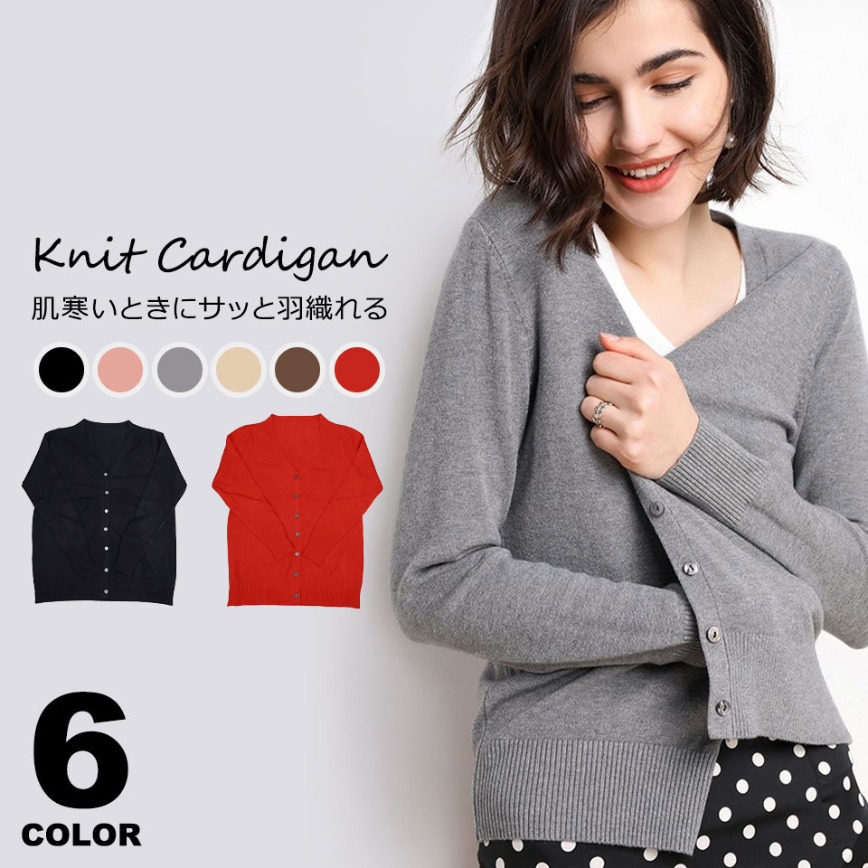 Vネックラインが首周りをスッキリみせるニットカーディガン。色違いで欲しくなる、トレンドに左右されないベーシックデザインのニットカーディガンです。少し肌寒い時にサッと羽織れるから、夏の冷房対策にもオススメのニットカーディガンです。
