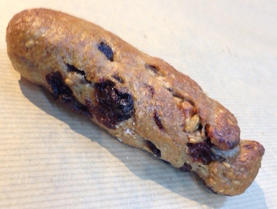 おいしさにこだわり抜いた天然酵母、国産小麦全粒粉100%のパン生地にジューシーなサルタナレーズンとくるみをたっぷり混ぜ込みました。甘酸っぱさとコクのバランスでおいしさ倍増ですヾ(´ー`)ノ(長時間低温発酵)。店頭では3人に1人の方がお買い求め頂いております。
