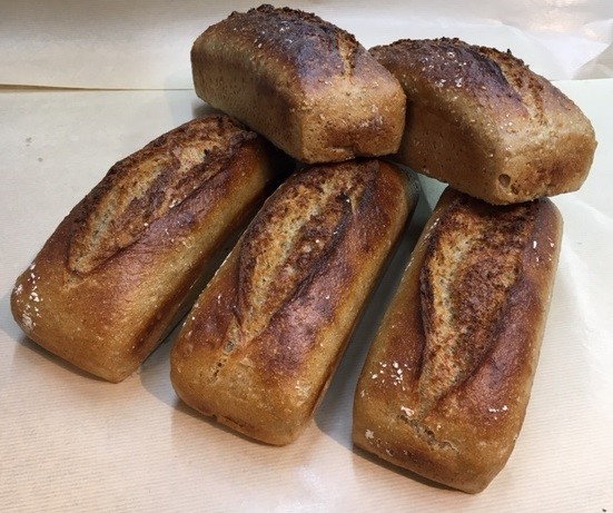 小麦の旨みを最大限引き出した天然酵母、国産小麦全粒粉100%のパン、「全粒100シンプル」の4本+1本おまけセットです。(4本の価格で5本です)