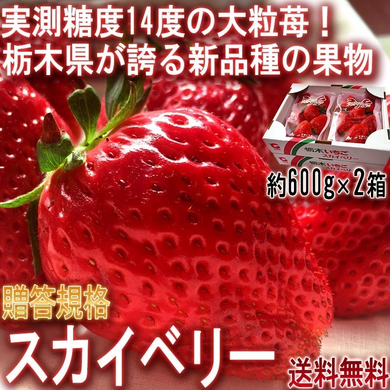 スカイベリー 大粒いちご 約600g×2箱 計1.2kg 栃木県産 贈答品 JAとちぎ ジューシーな果肉に濃厚な味!苺王国期待の新品種