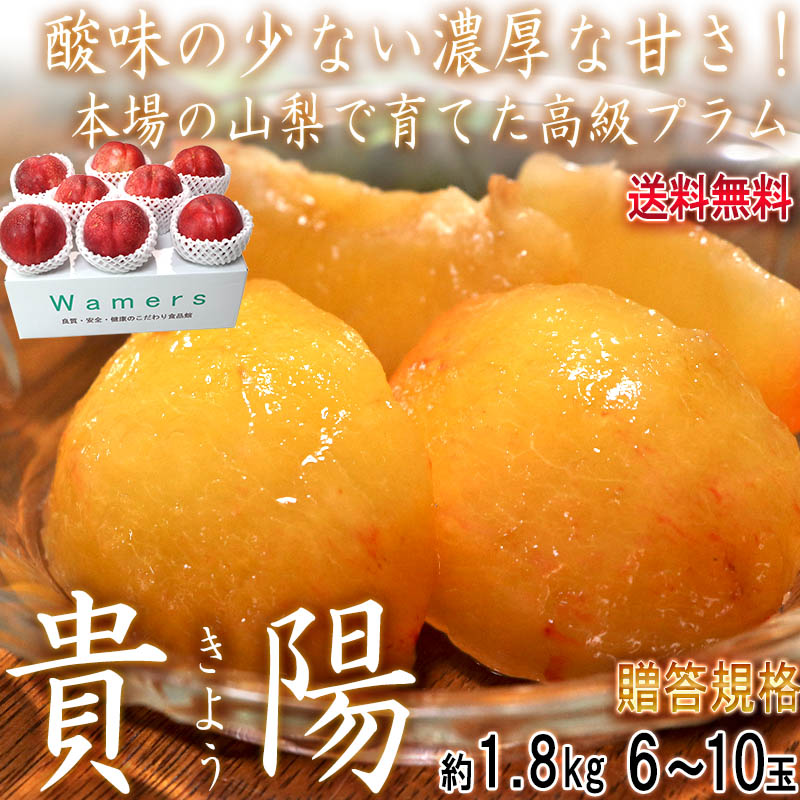 | 名称 | 【濃厚な甘さの高級プラム!】貴陽 きよう 約1.8kg 6〜10玉入り 山梨県産あるいは長野県産 贈答規格 JA共撰品 |