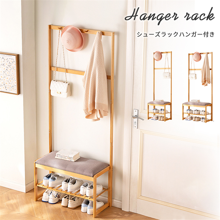 玄関ベンチ シューズラック ハンガー付き 玄関チェア 玄関ベンチ 幅50 幅70 シューズラック 収納 座面クッション 椅子 サポートチェア 送料無料