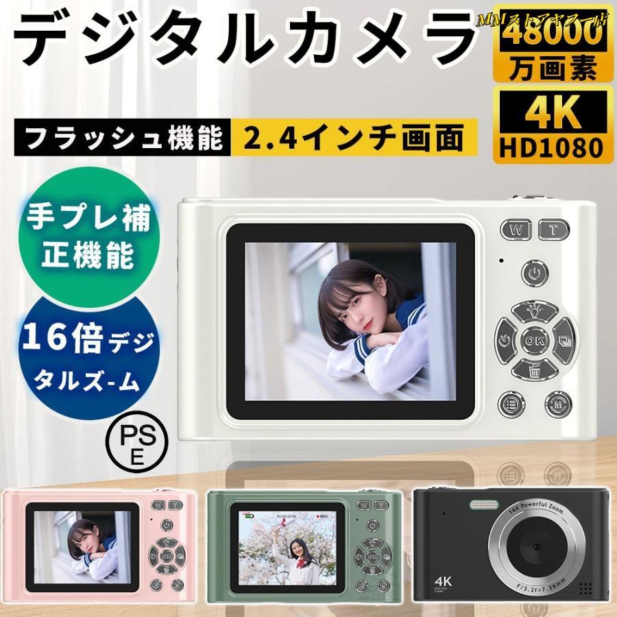 デジタルカメラ 4K 4800万画素 高画質 レトロ デジタルカメラ 自撮り 16倍ズーム 手振れ補正 IPS大画面 美顔 子供カメラ キ 2.4インチ 軽量 子供向け 動画 学生