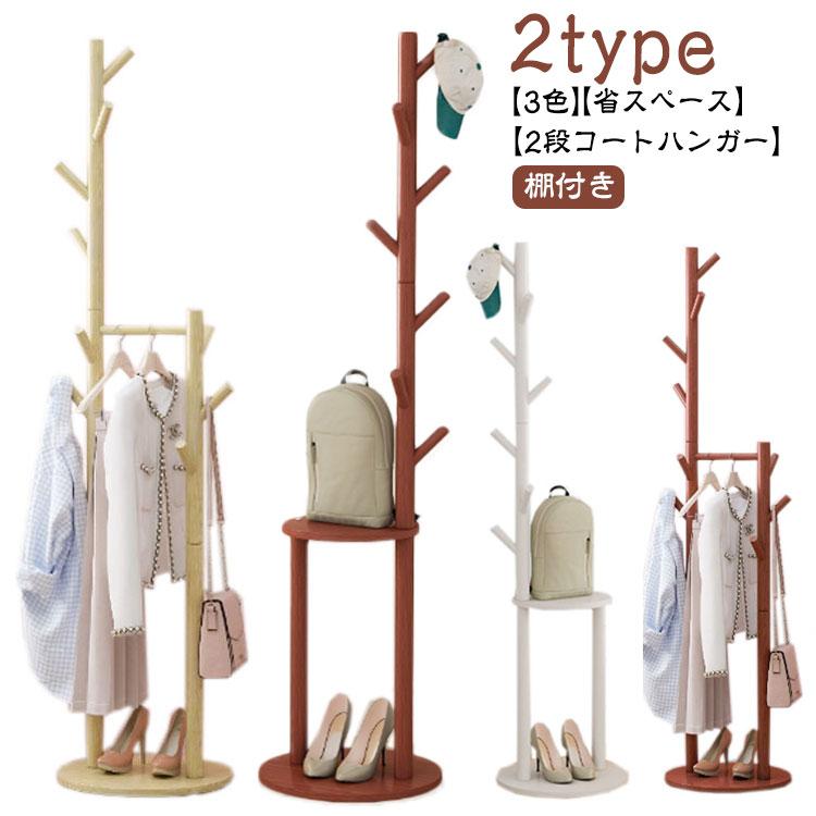 ポールハンガー 棚付き 北欧 おしゃれ スリム 省スペース コートハンガー 木製 ハンガーラック 衣服収納 インテリア 玄関 リビング 寝室 収納家具