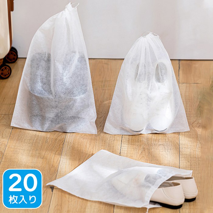 巾着袋 不織布 収納袋 20枚入り Mサイズ Lサイズ シューズケース シューズバッグ 不織布保管袋 バッグ収納袋 不織布巾着袋