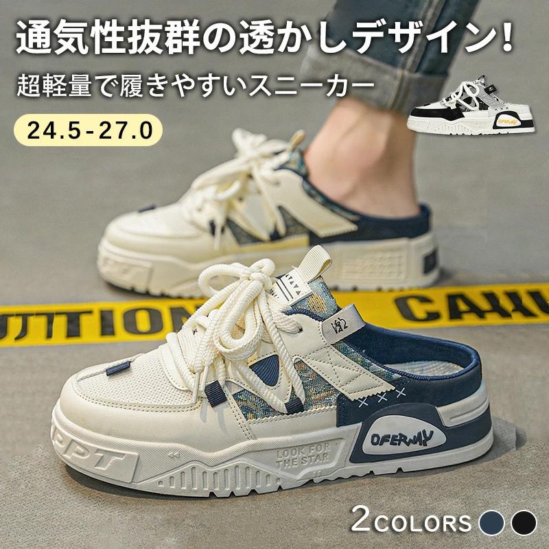 スニーカー サンダル ミュールスニーカー メンズ スリッポン 立ち仕事 かかとなし スリッパ 疲れにくい 軽量 通気性 歩きやすい おしゃれ スニーカー サンダル