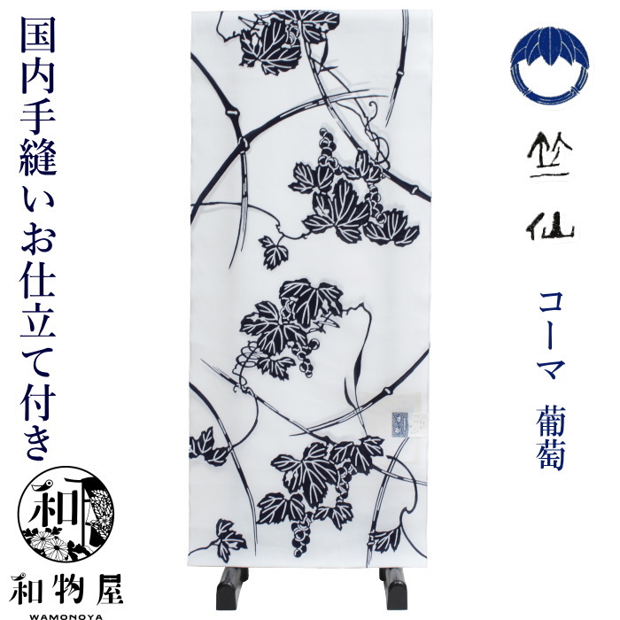 【 爆買 】竺仙 浴衣 ちくせん 反物 ゆかた コーマ地 白色 新作 葡萄 2025年 新柄 国内手縫いお仕立付き 送料無料 和物屋 レディース浴衣 日本製 お仕立て込み