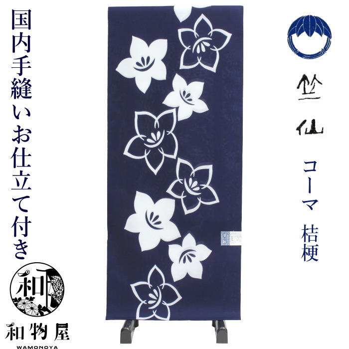 【 爆買 】竺仙 浴衣 ちくせん 反物 ゆかた コーマ地 コーマ 紺 色 桔梗 レディース浴衣 新柄 国内手縫いお仕立付き 送料無料 日本製 竺仙ブランド 大人浴衣 人気柄 おとなの浴衣 お仕立て込み
