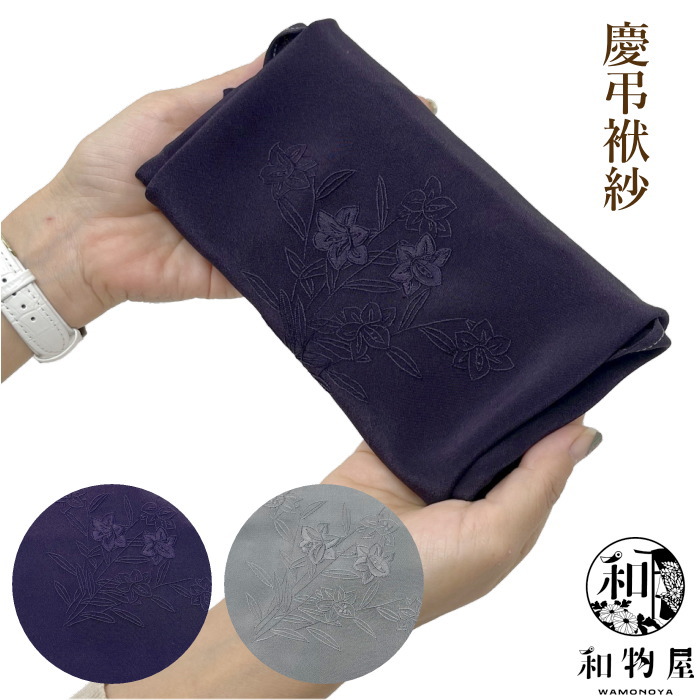 御祝いの場合は、紫色の袱紗(ふくさ)を、仏事用にはグレーをお使い下さい。