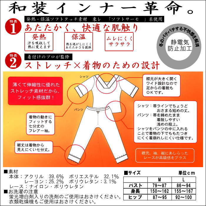 東レの「ソフトサーモ」糸を使用した暖かい(あたたかい)和装インナー(和装肌着・肌襦袢)です。
