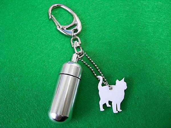 ペット 遺骨カプセルキーホルダー シルエット 猫 1 カプセル大