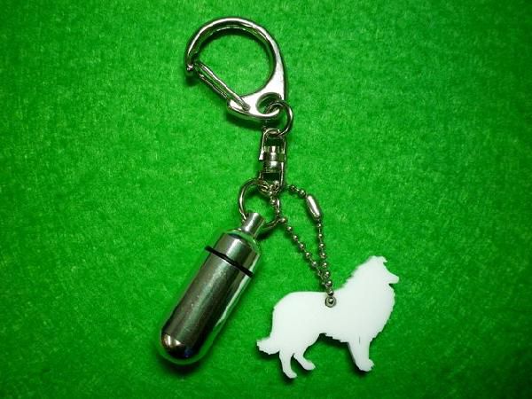ペット 遺骨カプセルキーホルダー シルエット シェルティ・コリー カプセル小