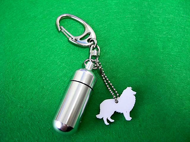 ペット 遺骨カプセルキーホルダー シルエット シェルティ・コリー カプセル大