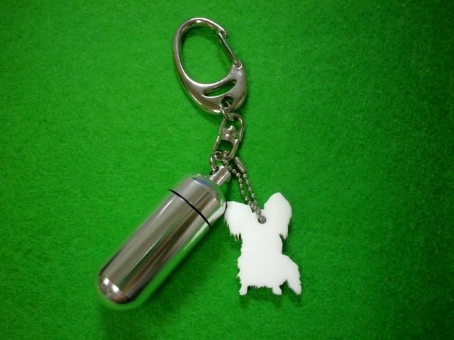 ペット 遺骨カプセルキーホルダー シルエット パピヨン カプセル大
