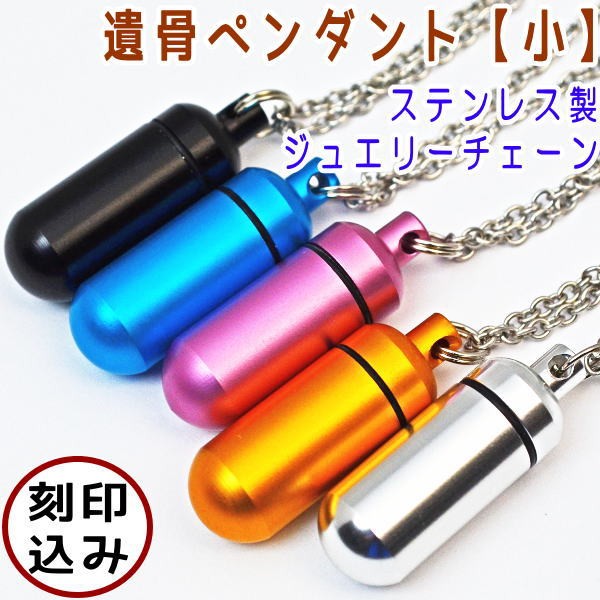 ペット遺骨ペンダント 刻印込 カプセル小 ステンレス製ジュエリーチェーン ペット遺骨カプセル ペット遺骨入れ