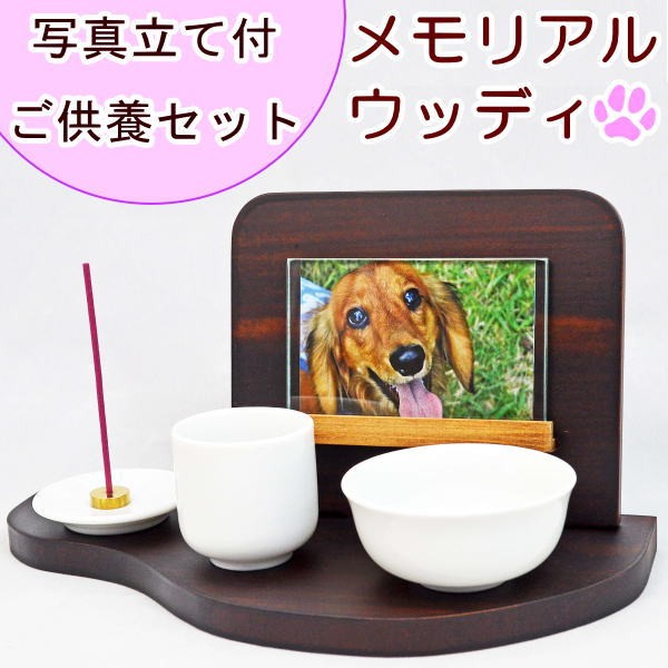 ペット仏壇 ペット仏具 写真立て付 ご供養セット メモリアルウッディ 木目 仏壇 コンパクト ミニ モダン 小型