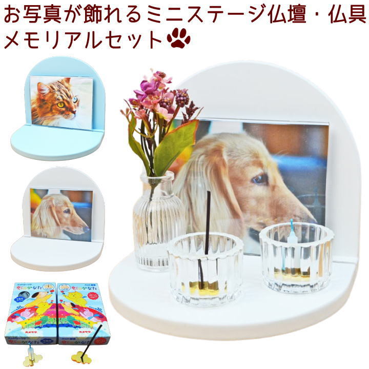 お写真が飾れるステージ仏壇仏具メモリアルセット ペット仏壇 ペット仏具セット 仏壇 コンパクト ミニ モダン 小型