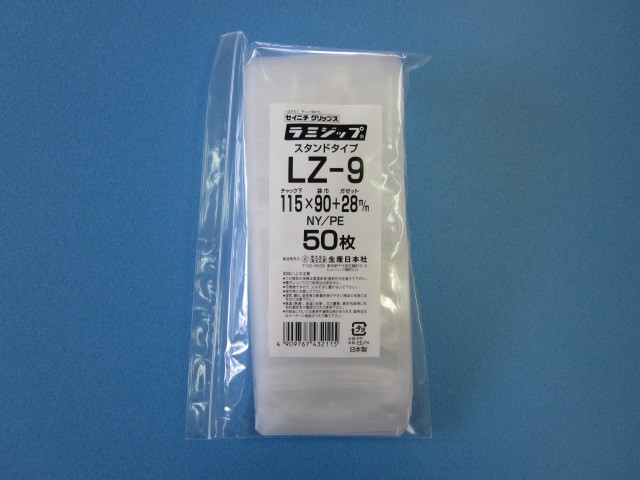 ラミジップ LZ-9 50枚袋入 透明チャック付袋 スタンド ナイロンタイプ