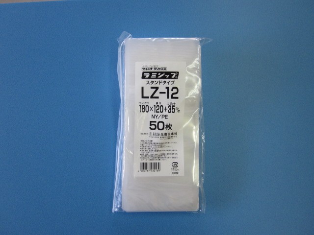 ラミジップ LZ-12 50枚袋入 透明チャック付袋 スタンド ナイロンタイプ