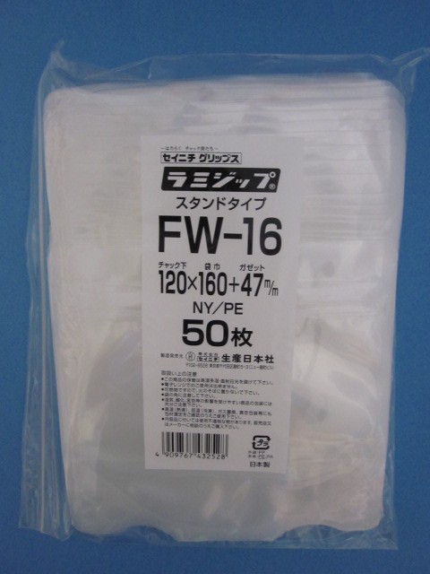 | サイズ | チャック上:32mm チャック下:120mm 底ガゼット:+47mm 袋巾:160mm |