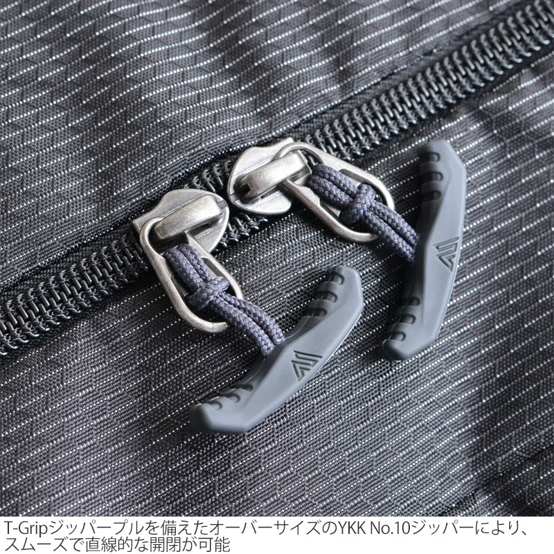 ・PFCフリーの耐久撥水コーティングを施した耐久性の高いリサイクルポリエステル混紡のリップストップ素材 ・バックパックのように背負うことができる取り外し可能なパッド入りショルダーストラップは、使用しないときは収納可能 ・使用しないときも、荷物が増えたときも対応できる省スペースなパッカブルデザインで、ジッパー式アクセサリーポケットに収納可能 ・T-Gripジッパープルを備えたオーバーサイズのYKK No.10ジッパーにより、スムーズで直線的な開閉が可能 ・ジッパー先端のDリングを固定し、外部からの不正アクセスを防止するパッシブジッパーロック ・小物を分けて収納できるジッパー式サイドアクセサリーポケット ・内蔵のグラスファイバー製のロッドで補強したキャリーストラップによって、重量を均等に分散し、手に食い込むのを防止 ・2層のボトムにより耐摩耗性と耐久性を向上 ・外側に、携帯品を取り付けられるギアループ付き |