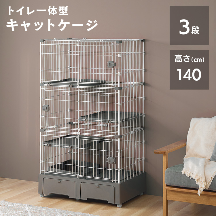 猫 ケージ 3段 ペットケージ 猫ケージ 猫トイレ付 コンパクト 猫用 トイレ一体型 キャットケージ 猫砂スコップ付き グレー MB273 頑丈
