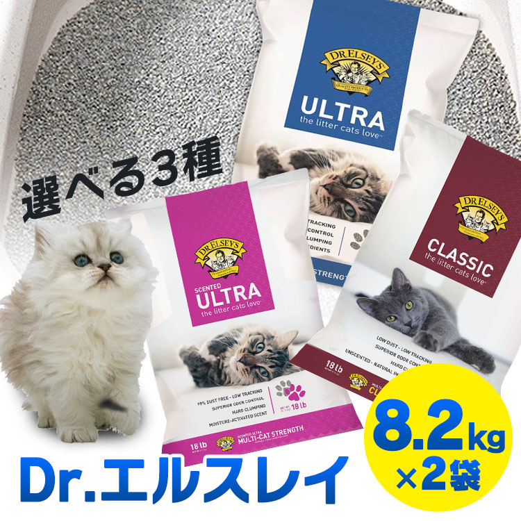【並行輸入品】 猫砂 固まる 鉱物系 8.2kg×2袋セット Dr. エルスレイ ベントナイト プレシャスキャット ウルトラ クラシック センティド 無香料 香り付き