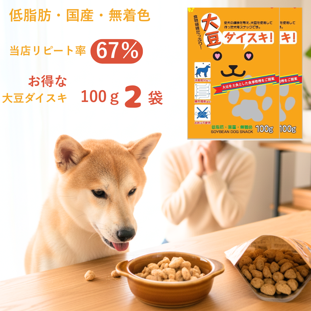 タイムセール開催 犬 フード おやつ 国産 食物繊維たっぷり(大豆ダイスキ)100g×2個セット ★当店いちおし!のおやつ★