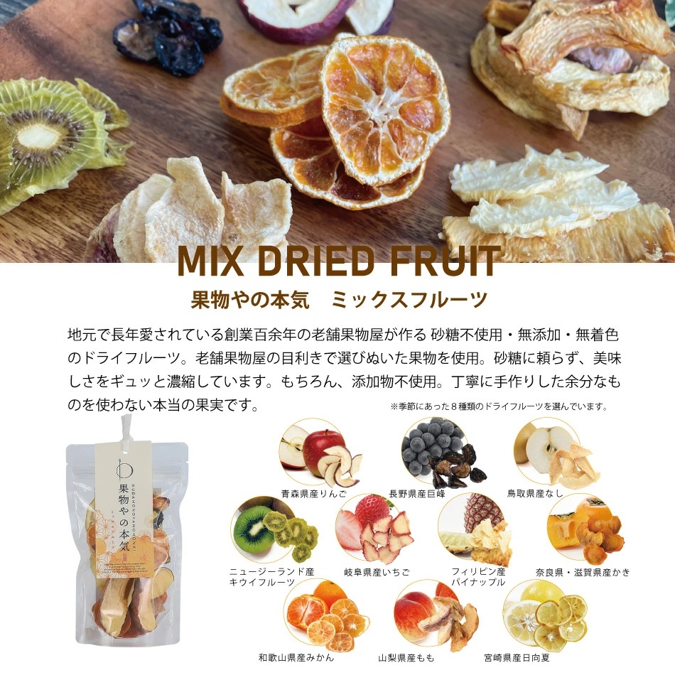 | 原材料名 | 【果物やの本気】 ※グルテンフリー ※特定原材料不使用検査済 りんご(青森県産)、みかん(和歌山産)、キウイフルーツ(福岡県産・愛媛県産・ ニュージーランド産)、パイナップル(フィリピン産)、梨(鳥取県産)、柿(奈良、滋賀産)、桃(山梨県産)、苺(岐阜県産)、ぶどう(長野県産)、日向夏(宮崎県産)、マンゴー(ペルー産)、いちじく(京都府産)、※上記12種類のうち8種類のセットとなります。 【近江なごみ茶 和紅茶】 茶(無添加)原料原産地名:滋賀県 |