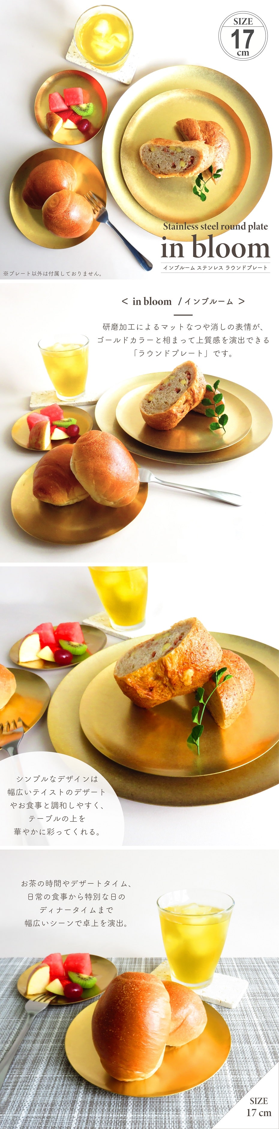 食器 プレート インブルーム ステンレスラウンドプレート17cm ステンレス製 真鍮風 ゴールド 食洗機使用可 トレー 受け皿 小物入れ ヴィンテージ調 インテリア