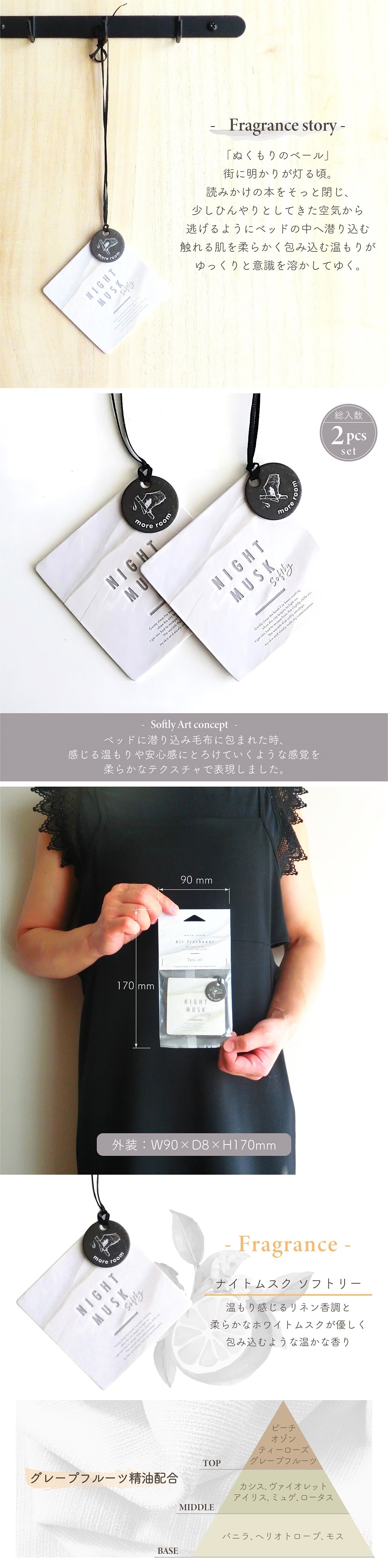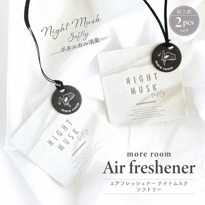 アロマ モアルーム エアーフレッシュナー ナイトムスク ソフトリー 2枚入り 吊り下げ グレープフルーツ精油 紙製 芳香剤 タグ サシェ 寝室 室内 玄関 インテリア