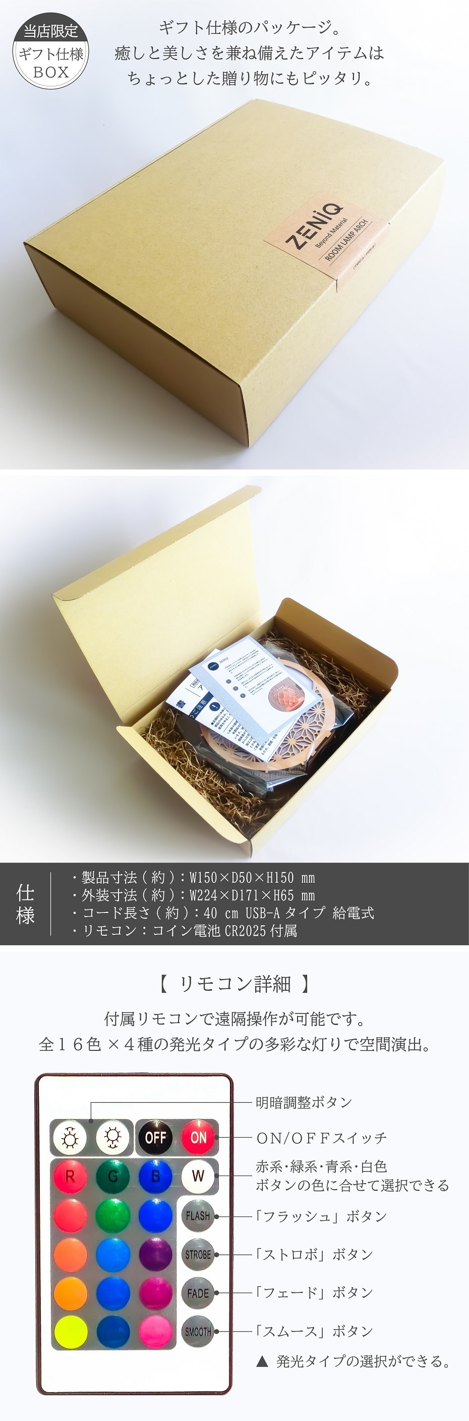 | 電 源 | USB給電式(電源ケーブル:USB-Aタイプ) リモコン:コイン電池式 CR2025付属 光源:LED |